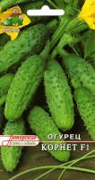 Описание растения: Раннеспелый гибрид с частичной партенокарпией. Для открытого грунта и пленочных теплиц. Плоды корнишонного типа. В плодоношение вступает через 42-44 дня после появления всходов. Растение с букетным типом завязи, формирует несколько зеленцов в одном узле. Плоды цилиндрические, крупнобугорчатые, слегка ребристые, зеленые с полосами до середины, белошипые, длиной 9-11 см, без горечи.