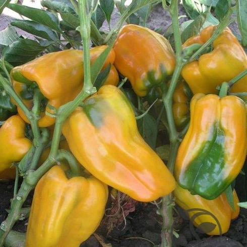 Среднеранний крупноплодный сорт, куст компактный, средней высоты (50-70 см). Плоды призмовидные, пониклые, ярко-желтые, сочные, великолепного вкуса, массой 200-300 г. Число гнезд 3-4. Толщина стенки плода — 7-8 мм. Для выращивания в открытом грунте и под пленочными укрытиями. Рекомендуется для использования в свежем виде, домашней кулинарии и консервирования: фарширование, "лечо". Урожайность товарных плодов в открытом грунте 3,4-4,2 кг/кв.м. Посев на рассаду третья декада февраля – первая декада марта. Пикировка в фазу 1-2 настоящих листьев. Возраст рассады 60-65 дней. В пакете 10 штук.