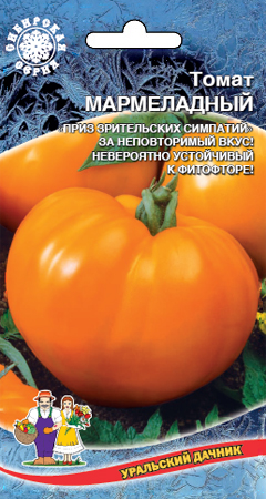 «Приз зрительских симпатий» за неповторимый вкус! Плоды плоско-округлые, массой до 150 г, красно-оранжевые, мясистые, сочные, сладкие, с плотной мякотью, напоминающей по вкусу мармелад. Он невероятно устойчив к болезням: даже когда соседние, сортовые кусты, черны от фитофторы, у Мармеладного они зеленые и ломятся от плодов.